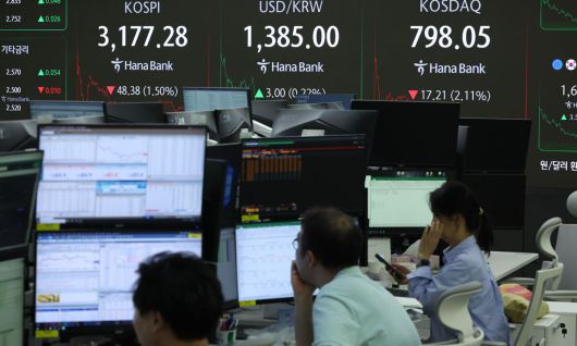 18일 한국거래소에 따르면 이날 코스피 지수는 전장 대비 48.38포인트(1.50%) 내린 3177.28에 장을 마쳤다. 코스닥 지수도 전장보다 17.21포인트(2.11%) 떨어진 798.05에 거래를 마감했다.