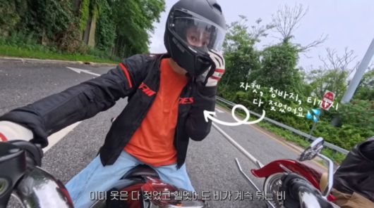 이시영은 "고속도로 타니 더 내리기 시작한 비. 멈춰야 하나 포기해야 하나 걱정을 많이 했다. 외투까지 이미 다 젖었고 헬멧에 자꾸 비가 튀어 앞이 안 보이는데 비는 그칠 기미가 안 보였다"며 당시 상황을 자막으로 설명했다.