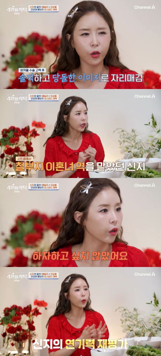 그러면서 "눈화장을 되게 진하게 해주더라. 그랬더니 쌍꺼풀 라인이 더 잡히더라. 여러 가수들이 하는 예능프로그램이었는데 god (김)태우가 '신지 눈 누가 저렇게 잘못 만들어놨냐' 이러더라. 그래서 '쌍꺼풀 수술 했어요'라고 얘기를 한 거다. 너무 티가 나니까"라며 "그러면서 '털털하고 솔직하네', '당돌하네' 이런 이미지가 생겨서 정말 예능을 많이 했다"고 말했다.