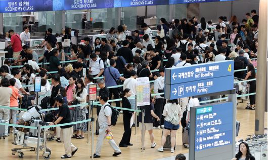 광복절 연휴가 시작된 지난 15일 인천국제공항 출국장에서 여행객들이 출국 수속을 하고 있다. 뉴시스 |