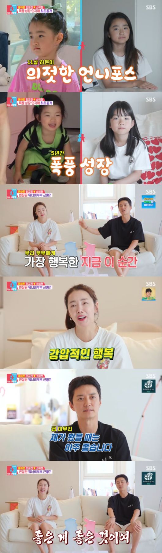 인교진은 "맞다. 정말 많이 컸다. 조금 있으면 사춘기도 오겠지. 그건 자연스러운거니까"라고 했고, 소이현은 "하은이가 내년에 5학년이니까 100% 사춘기가 올 것 같다. 근데 그게 잘 크고 있다는 증거라고 하더라"고 말했다.