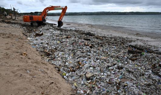 지난 1월3일 인도네시아 발리섬 케동가난 해변에 밀려든 쓰레기를 굴삭기가 치우고 있다.AFP 연합뉴스 자료사진 |