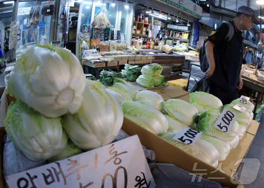 한편 배추 외에 무는 한 개에 2588원으로 전년 동기 대비 18% 내렸고, 양배추는 개당 4526원으로 3.3% 올랐다.