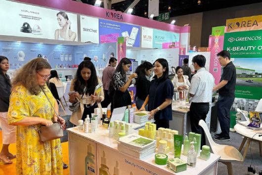 코트라가 지난해 4월 인도 뭄바이에서 개최한 ‘코스모프로프 인디아(COSMOPROF India)’에서 한국관을 운영했던 모습.. (사진=뉴스1) |