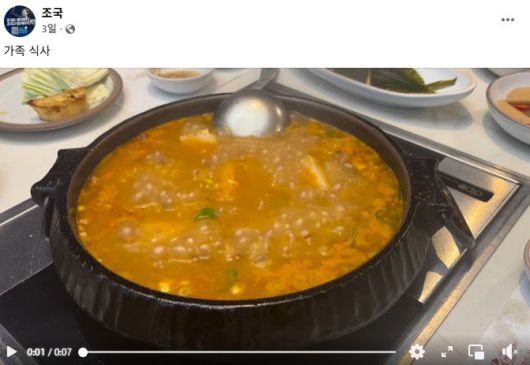 조국혁신당 조국 전 대표가 8·15 광복절 특별사면으로 출소한 당일 소셜네트워크서비스(SNS)에 “가족 식사”라며 게시한 된장찌개 영상을 두고 논란이 일고 있다. 해당 식당이 서울의 한 고급 한우 전문점으로 추정되면서 야권에서는 ‘위선’이라는 지적이 이어졌다.