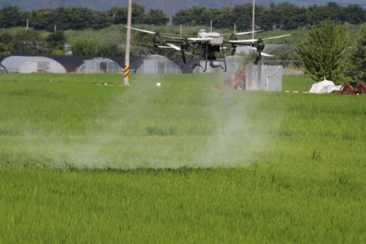 지난달 28일 대구 달성군 화원읍 설화리 논에서 드론을 활용한 무인항공방제가 진행되고 있다. /사진=뉴스1. |