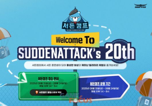 한편, 넥슨은 23일 저녁 6시 30분부터 세원정밀 창고 '서든캠프' 팝업스토어에서 20주년 기념 디렉터 쇼케이스를 진행한다. 쇼케이스에는 김태현 디렉터가 나서 20주년을 축하하고 다양한 소식을 전달할 예정이며, '브레드' SOOP 채널과 '서든어택' 공식 유튜브 채널을 통해 온라인 생중계 된다.