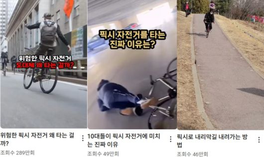 유튜브에 올라온 픽시 자전거 관련 영상. 유튜브 갈무리 |