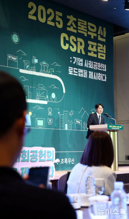 [서울=뉴시스] 박주성 기자 = 초록우산 홍보대사인 가수 앤디가 19일 오전 서울 중구 앰배서더 서울 풀만 호텔 2층 그랜드볼룸홀에서 열린 '2025 초록우산 CSR 포럼'에 참석해 축사를 하고 있다. 2025.08.19. park7691@newsis.com
