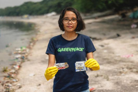 ▲마리안 레데스마(Marian Ledesma) 활동가. '사셰'를 들고 있다. ⓒ그린피스 |