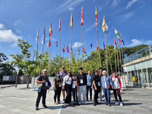 주한 외국인 영상 크리에이터 및 온라인 커뮤니티 운영자 20여명이 애기봉에서 기념촬영을 하고 있다. 김포시 제공 |