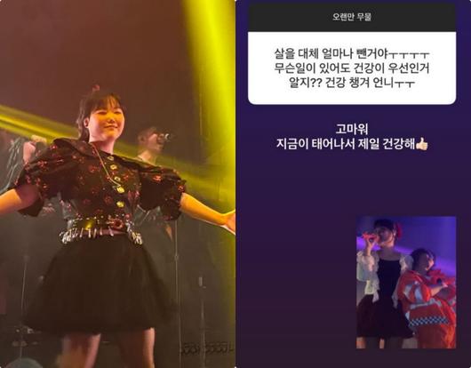 이와 함께 공개된 사진 속 이수현은 무대 위에서 화려한 의상을 입고 여유로운 모습을 선보이고 있다. 살이 많이 빠진 듯 갸름해진 턱선과 늘씬한 팔다리가 시선을 끌었다.