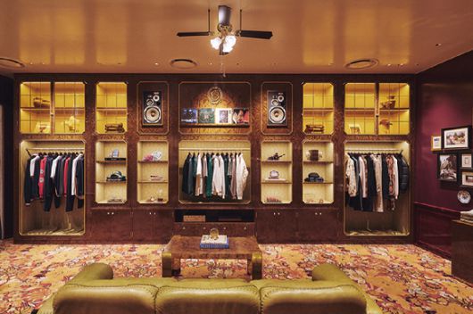 이번 매장은 살롱형 부티크를 콘셉트로, 드롤 드 무슈 파리 플래그십 스토어의 감성을 그대로 옮겨왔다. 1970년대의 우아함과 1990년대 스트리트 문화를 결합한 하이브리드 공간이 특징이다.