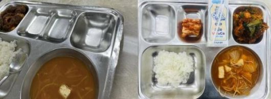 당시 사진에는 순대 채소볶음과 포기김치, 콩나물 김치찌개만 놓여 있었다. 이날 원래 제공되기로 한 메뉴에도 칼슘찹쌀밥, 순대야채볶음, 두부김치찌개, 포기김치·유산균요구르트로 기록돼 있었다.