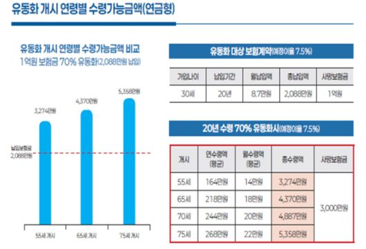 유동화를 통해 최소한 본인이 납입한 월 보험료를 상회하는 금액을 비과세로 수령(연금 혹은 서비스)할 수 있으며, 수령기간과 유동화 비율은 소비자가 직접 선택이 가능하다.