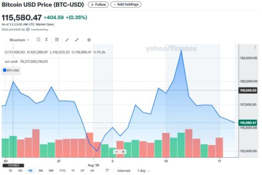 비트코인 가격 차트, 자료=야후 파이낸스, 2025.08.19 koinwon@newspim.com |