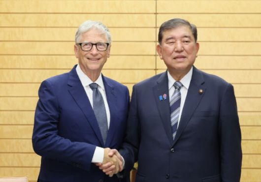 [이데일리 김정유 기자] 빌 게이츠 게이츠재단 이사장의 예방을 받은 이시바 시게루 일본 총리는 세계백신면역연합에 5년간 5억 5000만 달러(한화 약 7640억원)을 지원할 것이라고 밝혔다.
