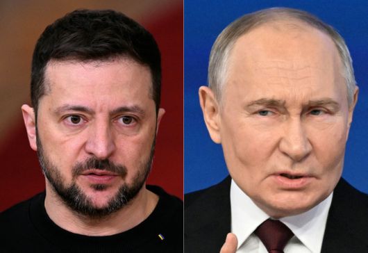 볼로디미르 젤렌스키 우크라이나 대통령과 블라디미르 푸틴 러시아 대통령. AFP연합뉴스 |