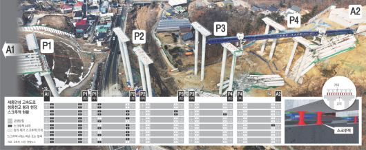 다리 상판 대들보 받친 ‘스크루잭’, 작업 편의 위해 제거