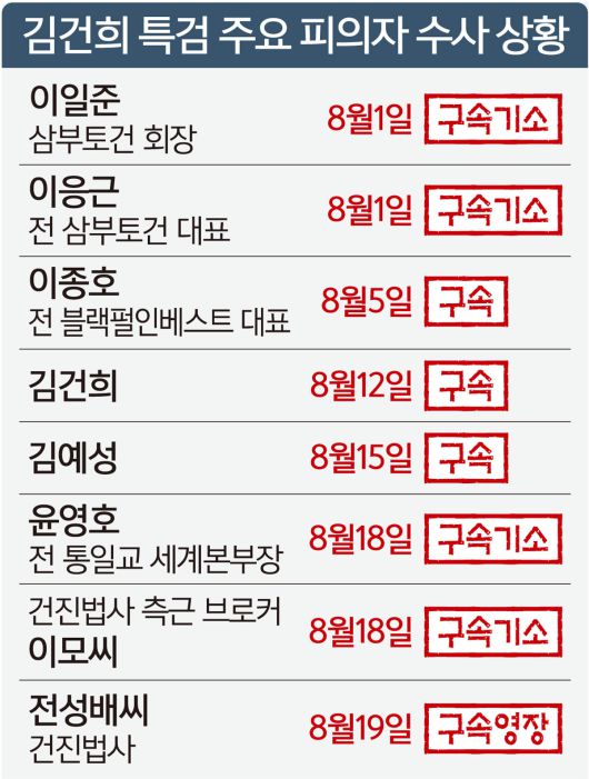 특검은 1호 강제수사 사건인 삼부토건 의혹과 관련해 이일준 회장, 이응근 전 대표를 1일 구속기소했지만 공소장엔 김씨의 이름이 담기지 않았다. 특히 이기훈 삼부토건 부회장 겸 웰바이오텍 회장이 자신의 영장실질심사가 진행된 지난달 17일 도주하면서 수사가 제자리걸음이라는 평가다. 특검은 이날 경찰청 국가수사본부에 이 부회장에 대한 긴급 공개수배를 요청했다.