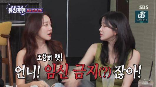 그러면서 '미혼'인 조현영도 '임신 금지' 조항에 해당된다고 밝혔다. 돌싱 멤버들이 "조현영은 결혼도 안 했는데?"라며 놀라자, 고우리는 "요새 뭐 순서가 어딨냐"고 말했고, 조현영은 "요즘은 (아이가) 혼수다"라고 마라맛 토크를 펼쳤다.