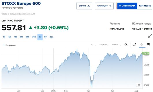 범유럽 주가지수인 스톡스유럽600지수는 전 거래일 대비 3.80포인트(0.69%) 오른 557.81에 장을 마감했다. 독일 프랑크푸르트증시 DAX30지수는 108.30포인트(0.45%) 오른 2만4423.07에, 영국 런던증시 FTSE100지수는 31.48포인트(0.34%) 상승한 9189.22에, 프랑스 파리증시 CAC40지수는 95.03포인트(1.21%)뛴 7979.08에 각각 거래를 마쳤다.