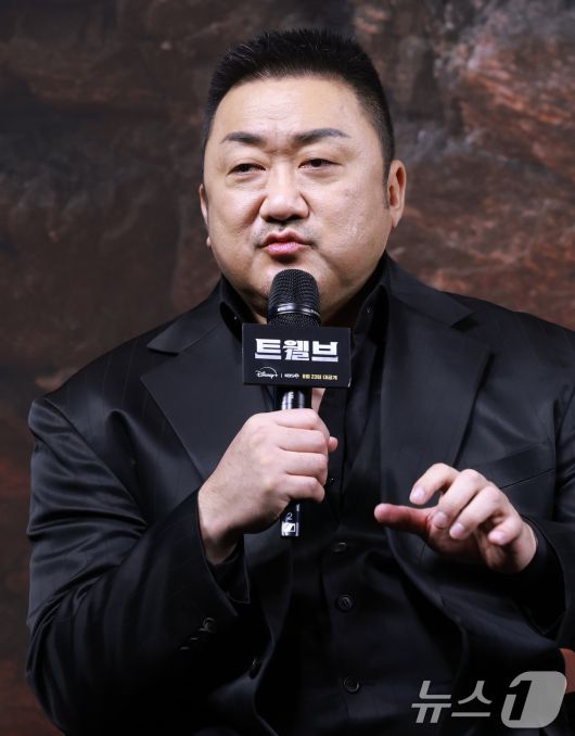 배우 마동석이 20일 오전 서울 중구 앰배서더 서울 풀만 호텔에서 열린 KBS 2TV 토일 미니시리즈 '트웰브' 제작발표회에 참석해 인사말을 하고 있다. '트웰브'는 동양의 12지신을 모티브로 한 작품으로 인간을 수호하기 위해 인간의 모습으로 살아가고 있는 12천사들이 악의 무리에 맞서는 전투를 그린 액션 히어로물이다. 2025.8.20/뉴스1 ⓒ News1 권현진 기자 |