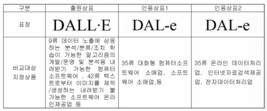 상품류에 관한 판단도 동일했다. 특허청은 DALL·E의 지정 상품 용도가 특정돼 있다고 하더라도 결국 소프트웨어 범주에 속한다고 지적했다. 인용 상표의 '소프트웨어 소매업'과 거래 과정에서 함께 사용될 때 출처의 오인·혼동을 초래할 개연성이 크다고 판단한 셈이다.