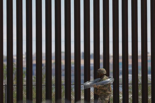 미국 육군이 지난달 23일(현지시간) 텍사스주 엘패소와 멕시코 사이 국경 장벽에 날카로운 철조망을 설치하고 있다. 로이터연합뉴스 |