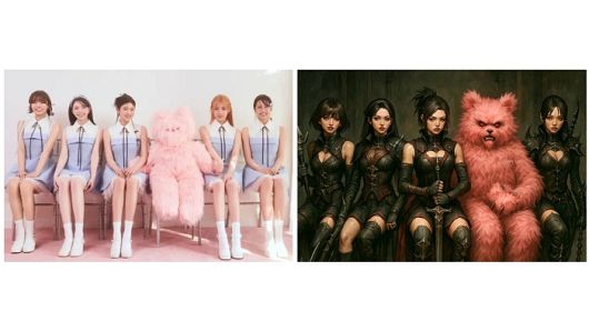 피프티피프티 사진을 나노 바나나로 '케이팝 데몬 헌터스' 스타일로 변환한 모습 [사진: LM 아레나] |