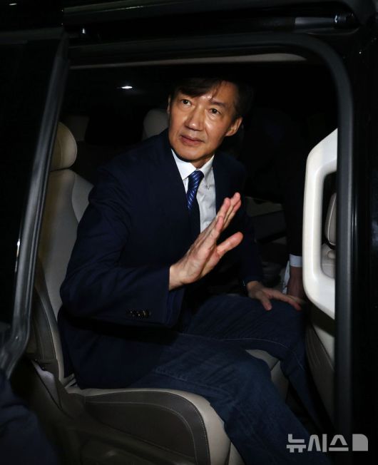 [서울=뉴시스] 배훈식 기자 = 조국 전 조국혁신당 대표가 15일 오전 서울 구로구 서울남부교도소에서 광복절 특사로 출소한 뒤 차량에 올라 지지자들을 향해 손을 들고 있다. (공동취재) 2025.08.15. photo@newsis.com |