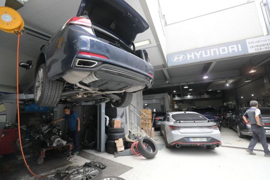 20일 금융감독원은 자동차 수리비·휴대품에 대한 허위청구 등 주요 보험사기 유형에 대해 안내했다. 사진은 서울 강남구 현대자동차블루핸즈 역삼현대서비스에서 차량을 수리하고 있다. 2022.8.10 뉴스1 |