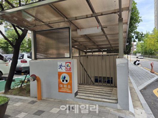 20일 오후 2시 20분쯤 서울 서대문구의 한 아파트 단지 안에 있는 대피소에서 민방위 훈련이 끝났지만 오가는 사람이 없어 조용하다. (사진=염정인 수습기자) |