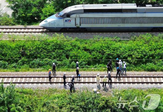 20일 오후 경북경찰청, 국립과학수사연구원, 항공철도사고조사위원회, 노동 당국 등의 관계자들이 경북 청도군 화양읍 삼신리 경부선 무궁화호 열차 사고 현장으로 향하고 있다. 2025.8.20/뉴스1 ⓒ News1 공정식 기자 |