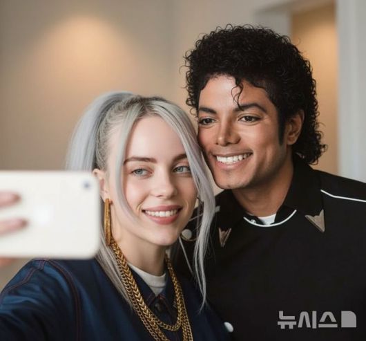 [서울=뉴시스] 인공지능(AI) 이미지 생성 모델 '나노 바나나'로 제작한 이미지. 팝스타 빌리 아일리시와 고(故) 마이클 잭슨이 함께 스마트폰 셀카를 찍는 모습을 연출했다. (사진=Lars_pragmata 엑스 캡처) |