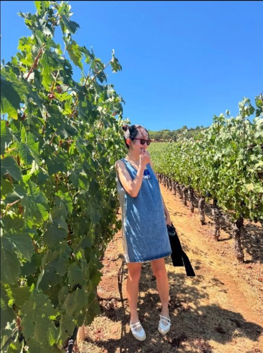 공개된 사진 속 엄지원은 포도밭 한가운데에서 환한 미소를 지으며 포도를 만지고 있다. 데님 원피스 차림에 선글라스를 착용한 채 특유의 털털하고 밝은 매력을 발산해 눈길을 끌었다.
