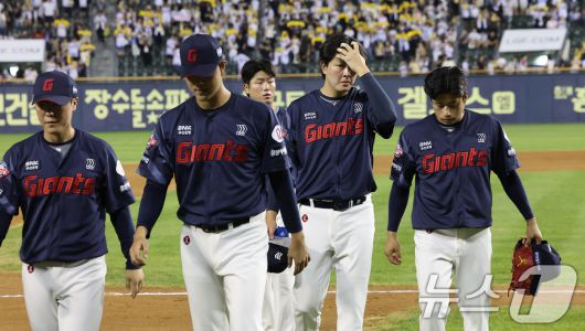(서울=뉴스1) 장수영 기자 = 20일 서울 송파구 잠실야구장에서 열린 프로야구 '2025 신한 SOL 뱅크 KBO리그' 롯데 자이언츠 대 LG 트윈스 경기에서 패배하면서 22년 만의 10연패 수렁에 빠진 롯데 선수들이 어두운 표정으로 경기장 밖으로 이동하고 있다. 2025.8.20/뉴스1