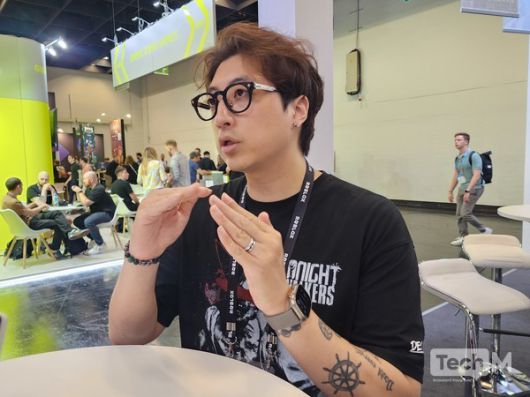 송광호 원웨이티켓스튜디오 대표가 20일(현지시간) 개막한 게임스컴 25 현장에서 테크M과 인터뷰를 하고 있다. /사진=조성준 기자 |