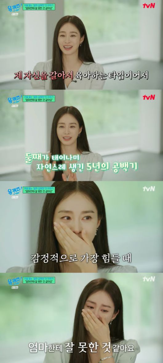 이어 "육아 스트레스가 컸다. 감정적으로 되게 힘들 때 제가 엄마한테 너무 잘하지 못한 것 같다"며 눈물을 터뜨렸다.