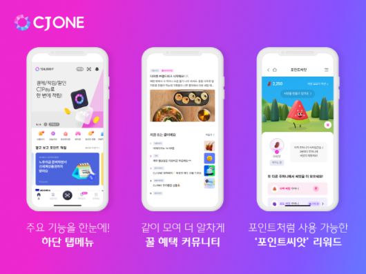 CJ ONE은 이번 리뉴얼을 통해 포인트 적립·사용을 넘어 회원이 직접 콘텐츠를 제작하고 보상을 받는 참여형 플랫폼으로 전환한다. 하단에 탭메뉴를 적용해 사용 편의성도 높였다.