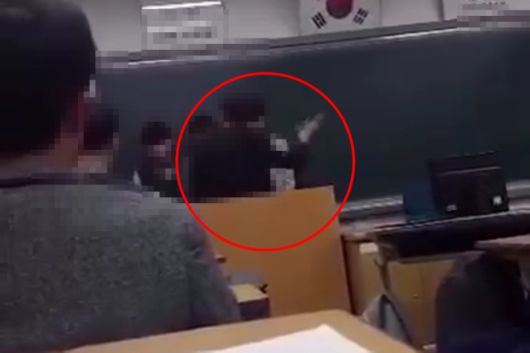 제보자는 “평소 무서운 선생님이라 (학생들이) 조용히 있다가 교사가 30분 넘게 수업에 안 들어와서 풀어져서 좀 떠들고 있던 중 뒤늦게 들어온 교사에게 떠든 학생들이 다 맞는 영상 중 하나”라고 당시 상황을 설명했다.
