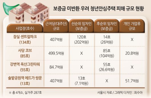 서울시가 청년안심주택 피해 임차인 보호 대책을 내놨지만, 입주민들의 불안은 좀처럼 가라앉지 않고 있다. 서울시는 20일 ‘청년안심주택 피해 임차인 보호 대책’을 발표하고, 주택진흥기금과 특별법을 활용한 지원 방안을 마련했다고 밝혔다. 서울시가 밝힌 피해 규모는 잠실·사당·구의·쌍문 등 4개소, 287호에 달한다.