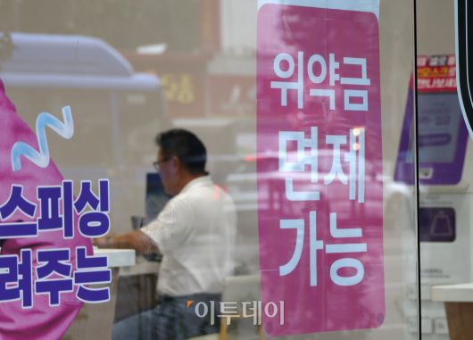 SK텔레콤 해킹 사고로 인한 위약금 면제 마감 시한 마지막날인 14일 이동통신 3사 간 번호이동 경쟁이 치열해지는 가운데 이날 서울 시내의 한 통신사 매장에 위약금 혜택 홍보 안내문이 붙어있다. SK텔레콤은 15일부터 계약 해지에 따른 위약금 환급 신청 접수를 시작할 예정이다. 지난 4월 18일 24시 기준 SK텔레콤 이동통신 회선에 가입된 이들 중 4월 19일 0시부터 7월 14일 24시 사이에 해지한 이들이 대상이다. 고이란 기자 photoeran@ |