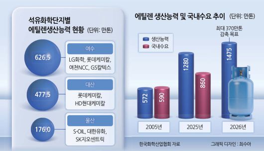그러면서 석화 기업들에 연말까지 최대 370만톤 규모의 나프타분해시설(NCC) 감축안 등을 담은 계획안을 제출하라고 요구했다. 정부 추진안이 이뤄질 시 국내 NCC 생산능력은 내년 기준 1470만톤에서 최대 1100만톤까지 줄어든다. 정부는 기업들의 계획안을 살펴본 후 금융 지원 등을 결정할 예정이다.