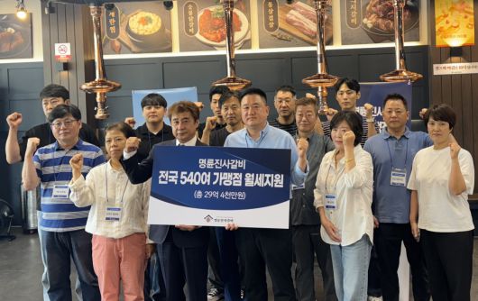 명륜당은 20일 오후 명륜진사갈비 강동구청역점에서 전국 540여 가맹점에 550만 원씩, 총 29억4000만 원 규모의 월세를 지원한다는 가맹점 월세지원 상생협약식을 진행했다. 협약식에는 강형준 명륜진사갈비 대표와 원종민 명륜진사갈비 가맹점주협의회장, 가맹점주 10명과 임직원이 참석했다.