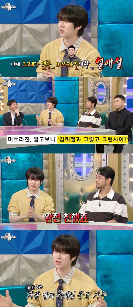 이날 김희철은 "저랑 근석이랑 홍기가 결이 비슷하다. 그래서 저랑 근석이랑 게이설이 엄청 많이 났었다. 그러다 결국 제가 미쓰라진이랑 열애설이 났다. 이게 진짜 크게 났다"라고 밝혔다.