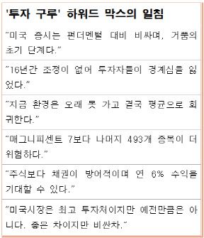 막스 회장은 “지금 분명히 경고음을 울리는 건 아니다. 당장 조정이 올 이유는 없다”면서도 “다만 중요한 건 지금 자산은 비싸고 앞으로 더 비싸질 수도 있지만, 이미 비싸다는 사실을 절대 잊어서는 안 된다”고 재차 강조했다. 지금처럼 전반적으로 고평가된 국면에선 무리한 추격 매수보다 리스크 관리가 현명하다는 게 그의 진단이다.