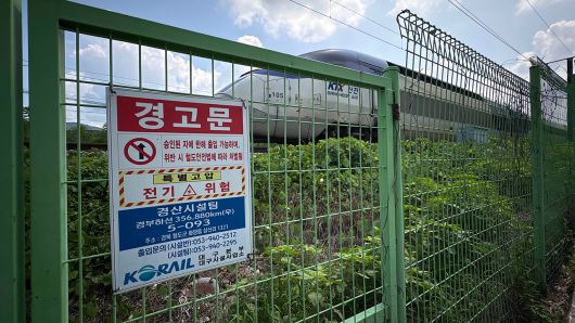 ▲ 7명의 사상자를 낸 경북 청도군 열차 사고 현장 인근에 설치돼 있는 코레일의 선로 출입문