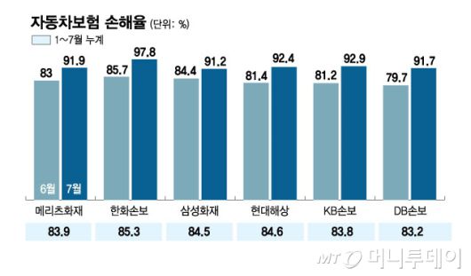 업계 한 관계자는 "자동차보험 손해율이 구조적으로 악화하는 상황에서 기후 리스크와 의료비 부담이 겹치고 있다"며 "통상 하반기에 손해율이 지속 증가하는 경향이 있어 우려스러운 상황"이라고 말했다.
