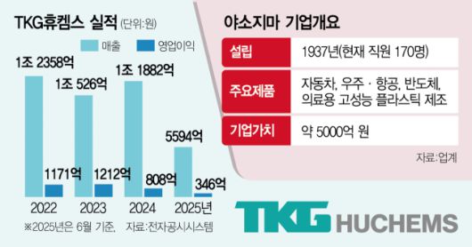 국내 질산 1위 기업인 TKG휴켐스(069260)가 일본의 특수플라스틱 제조사인 야소지마(Yasojima Proceed) 경영권 인수를 추진한다. 안정적인 기초화학 소재 사업 기반에서 반도체와 의료, 우주항공 분야로 확장, 경쟁력을 높이기 위한 행보다.